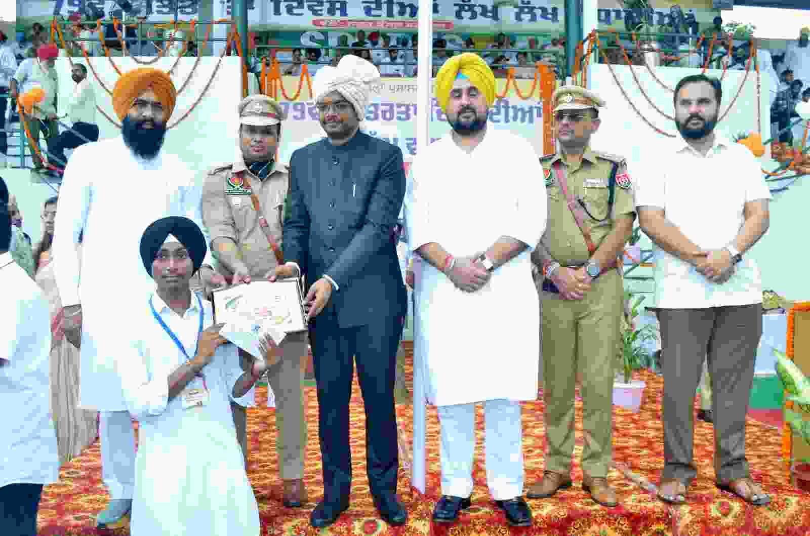 ਇਸ ਮੌਕੇ ਜ਼ਿਲ੍ਹਾ ਪ੍ਰਸ਼ਾਸਨ ਵਲੋਂ ਵਿਧਾਇਕ ਮਹਿਲ ਕਲਾਂ ਅਤੇ ਚੇਅਰਮੈਨ ਵਿਸ਼ੇਸ਼ ਅਧਿਕਾਰ ਕਮੇਟੀ ਸ. ਕੁਲਵੰਤ ਸਿੰਘ ਪੰਡੋਰੀ, ਚੇਅਰਮੈਨ ਜ਼ਿਲ੍ਹਾ ਯੋਜਨਾ ਬੋਰਡ ਅਤੇ ਮਾਰਕੀਟ ਕਮੇਟੀ ਬਰਨਾਲਾ ਸ. ਪਰਮਿੰਦਰ ਸਿੰਘ ਭੰਗੂ, ਹਲਕਾ ਇੰਚਾਰਜ ਹਰਿੰਦਰ ਸਿੰਘ ਧਾਲੀਵਾਲ, ਯੁੱਧ ਨਸ਼ਿਆਂ ਵਿਰੁੱਧ ਮੁਹਿੰਮ ਦੇ ਕੋਆਰਡੀਨੇਟਰ ਐਡਵੋਕੇਟ ਗੁਰਪ੍ਰੀਤ ਸਿੰਘ, ਜ਼ਿਲ੍ਹਾ ਤੇ ਸੈਸ਼ਨਜ਼ ਜੱਜ ਬਰਨਾਲਾ ਸ੍ਰੀ ਬੀ ਬੀ ਐੱਸ ਤੇਜੀ, ਐਸਐਸਪੀ ਮੁਹੰਮਦ ਸਰਫ਼ਰਾਜ਼ ਆਲਮ ਦਾ ਵਿਸ਼ੇਸ਼ ਤੌਰ ‘ਤੇ ਸਨਮਾਨ ਕੀਤਾ ਗਿਆ।
