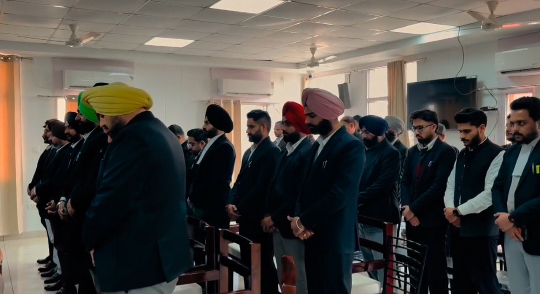 ਜ਼ਿਲ੍ਹਾ ਬਾਰ ਐਸੋਸੀਏਸ਼ਨ ਬਰਨਾਲਾ ਵਿਖੇ ਅੱਜ ਇੱਕ ਵਿਸ਼ੇਸ਼ ਸ਼ੋਕ ਸਭਾ ਦਾ ਆਯੋਜਨ ਕੀਤਾ ਗਿਆ, ਜਿਸ ਵਿੱਚ ਇਲਾਕੇ ਦੇ ਨਾਮਵਰ ਅਤੇ ਸੀਨੀਅਰ ਐਡਵੋਕੇਟ ਬਾਓ ਸ਼ਿਵਦਰਸ਼ਨ ਸ਼ਰਮਾ ਜੀ ਦੇ ਅਕਾਲ ਚਲਾਣੇ ‘ਤੇ ਡੂੰਘੇ ਦੁੱਖ ਦਾ ਪ੍ਰਗਟਾਵਾ ਕਰਦਿਆਂ ਉਨ੍ਹਾਂ ਨੂੰ ਸ਼ਰਧਾ ਦੇ ਫੁੱਲ ਭੇਟ ਕੀਤੇ ਗਏ। ਇਸ ਮੌਕੇ ਸਮੂਹ ਜੱਜ ਸਾਹਿਬਾਨ ਅਤੇ ਵਕੀਲ ਭਾਈਚਾਰੇ ਨੇ ਦੋ ਮਿੰਟ ਦਾ ਮੌਨ ਧਾਰ ਕੇ ਵਿਛੜੀ ਰੂਹ ਦੀ ਆਤਮਿਕ ਸ਼ਾਂਤੀ ਲਈ ਅਰਦਾਸ ਕੀਤੀ।