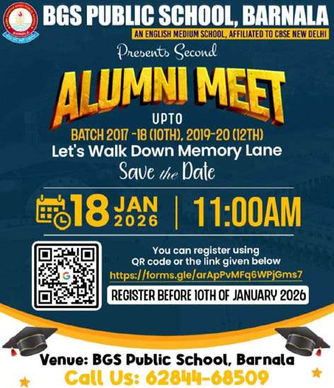 ਬੀ.ਜੀ.ਐਸ. ਪਬਲਿਕ ਸਕੂਲ ਬਰਨਾਲਾ ਵੱਲੋਂ ਦੂਜੀ ‘ਅਲੂਮਨੀ ਮੀਟ’ 18 ਜਨਵਰੀ ਨੂੰ ਹੋਵੇਗੀ