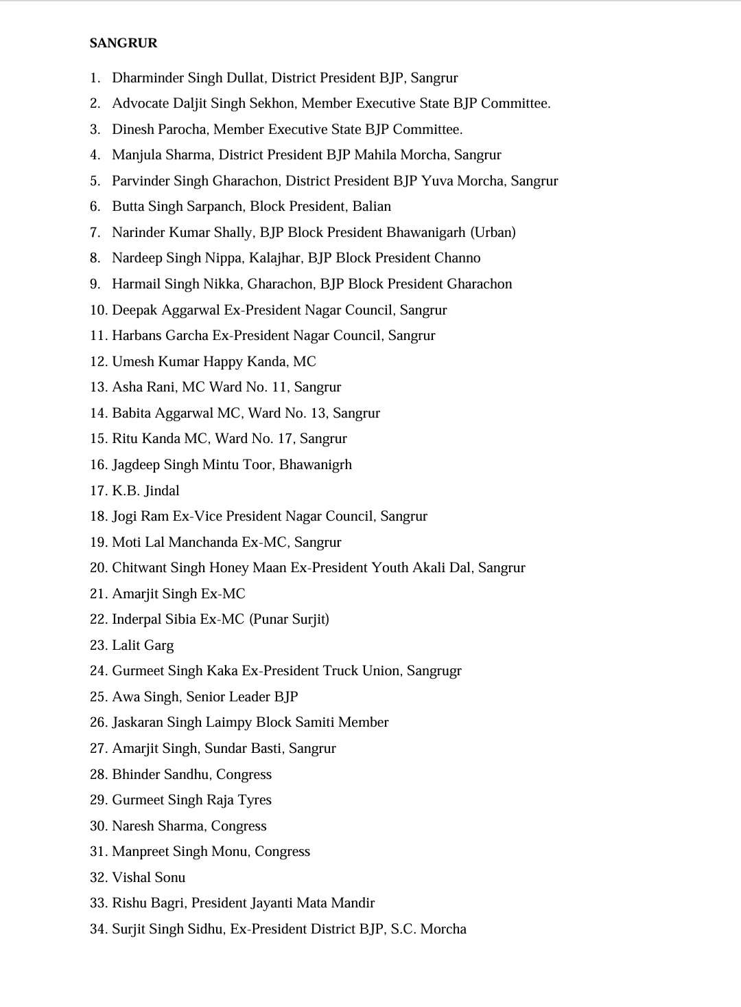 ਸਿਰਫ਼ ਜ਼ਿਲ੍ਹਾ ਪ੍ਰਧਾਨ ਧਰਮਿੰਦਰ ਸਿੰਘ ਦੁੱਲਟ ਹੀ ਨਹੀਂ, ਸਗੋਂ ਮਹਿਲਾ ਮੋਰਚਾ ਦੀ ਪ੍ਰਧਾਨ ਮੰਜੁਲਾ ਸ਼ਰਮਾ, ਕਈ ਸਾਬਕਾ ਕੌਂਸਲ ਪ੍ਰਧਾਨ ਅਤੇ ਦਿੜ੍ਹਬਾ, ਸੁਨਾਮ ਤੇ ਬਰਨਾਲਾ ਦੇ ਕਈ ਕਾਂਗਰਸੀ ਤੇ ਭਾਜਪਾ ਆਗੂ ਵੀ ਸ਼੍ਰੋਮਣੀ ਅਕਾਲੀ ਦਲ ਵਿੱਚ ਸ਼ਾਮਲ ਹੋ ਗਏ ਹਨ। ਸੁਖਬੀਰ ਬਾਦਲ ਨੇ ਸਿੱਧਾ ਮੁੱਖ ਮੰਤਰੀ ਭਗਵੰਤ ਮਾਨ ‘ਤੇ ਨਿਸ਼ਾਨਾ ਸਾਧਦਿਆਂ ਕਿਹਾ ਕਿ ‘ਆਪ’ ਸਰਕਾਰ ਨੇ ਸੂਬੇ ਨੂੰ ਨਸ਼ਿਆਂ ਅਤੇ ਗੈਂਗਸਟਰ ਕਲਚਰ ਦੀ ਭੇਟ ਚੜ੍ਹਾ ਦਿੱਤਾ ਹੈ, ਜਿਸ ਦਾ ਅੰਤ ਹੁਣ ਨੇੜੇ ਹੈ।